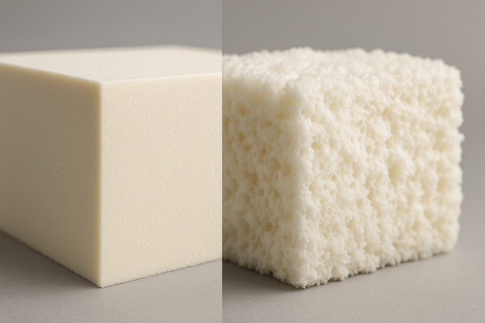 - Celulă deschisă = mai ieftină, fonic mai bună, permeabilă la vapori (necesită barieră de vapori separată) → bună pentru pereți interiori, plafoane și corecții acustice.